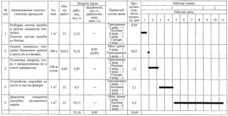 6.2 Затраты труда и машинного времени подсчитаны из расчета установки элементов опалубки лестничного марша на один этаж здания.