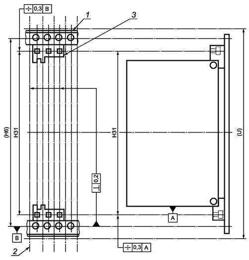 Н6 - расстояние между центрами монтажных отверстий, фиксирующих вставные блоки, лицевые или задние панели и соединители;