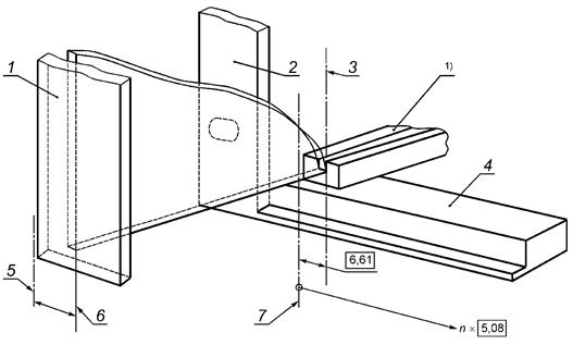 1 - типовая направляющая; 2 - горизонтальная деталь блочного каркаса; 3 - линия шага выводов; 4 - гнездо для установки центрирующего ловителя; 5 - область контакта