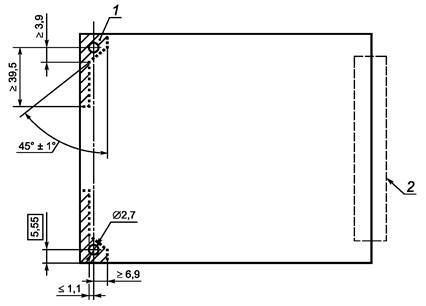 1 - заштрихованная зона должна быть оставлена для компонента рукоятки (с обеих сторон печатной платы); 2 - зона соединителя