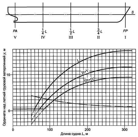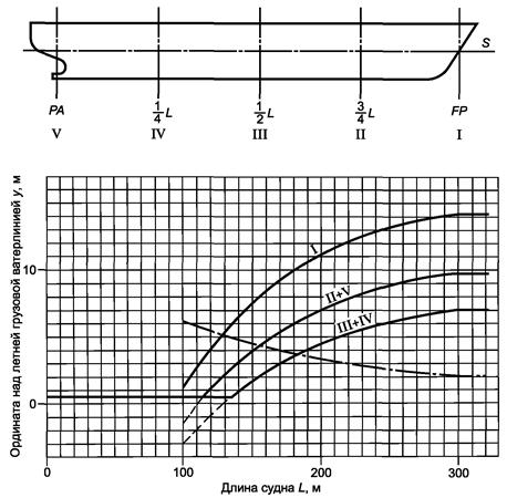 4 Расчетные ординаты от летней грузовой ватерлинии S для ординат II и V, а также III и IV различаются всего лишь на 0,5 - 1,0 м. Поэтому на графиках ординаты объединены попарно на соответствующих кривых каждого графика.