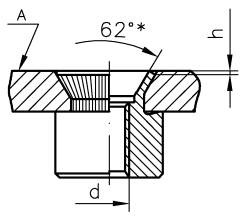6.1. Установку в конструкцию резьбовых втулок с накаткой производить последовательно запрессовкой и развальцовкой (клепкой) впотай конца втулки согласно чертежу, при этом выступание над поверхностью А не допускается, утопание должно быть оговорено (при необходимости) в конструкторской документации на изделие, в котором применены втулки.