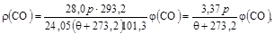 φ (СО) - объемная концентрация, 1 мл/106 мл.
