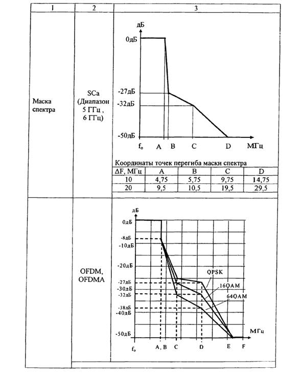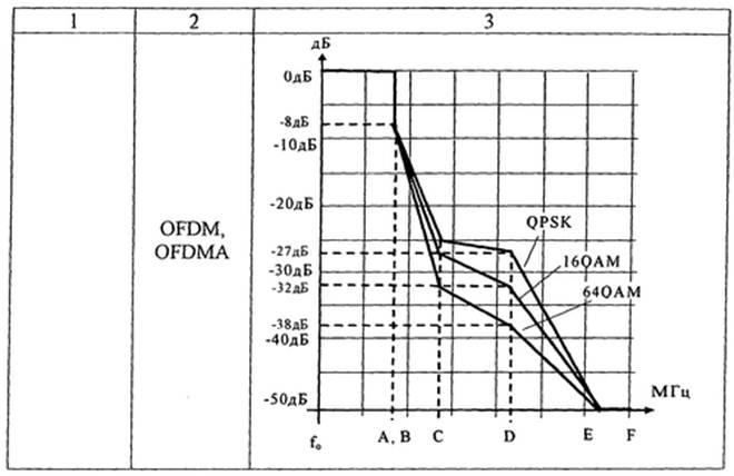 1. Значения допустимого уровня помехи от соседнего канала в условиях полной загрузки канала приведены в таблице.