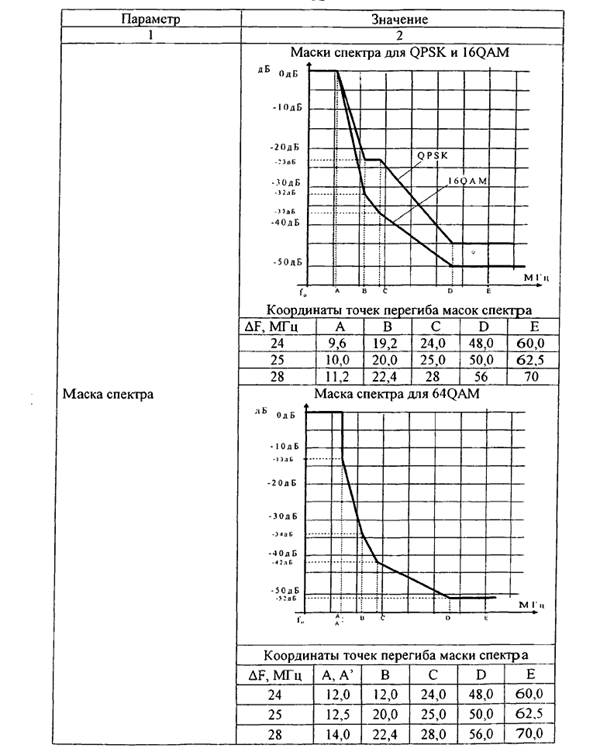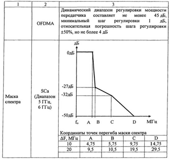 13. Для передатчика оборудования радиодоступа для БПД ТЗС устанавливаются следующие требования к параметрам:
