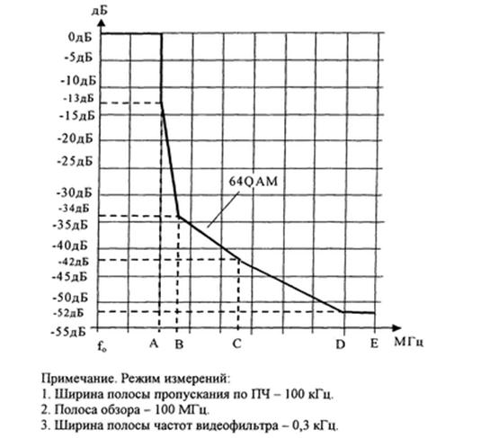 допустимый уровень помехи, не превышает минус 64 дБм |