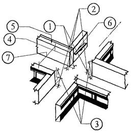 7 - отклонения во внутренних размерах поперечных сечений коробок опалубки и в расстояниях между внутренними поверхностями опалубки от проектных размеров ± 5 мм.