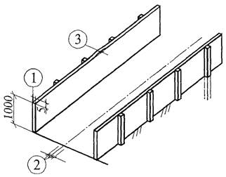 2 - смещение нижней грани опалубки от поперечной оси ± 15 мм;