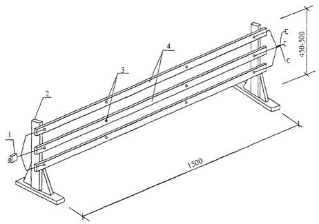 1 - разъем; 2 - деревянная стойка; 3 - болты; 4 - токопроводы (полоса 3´40 мм)