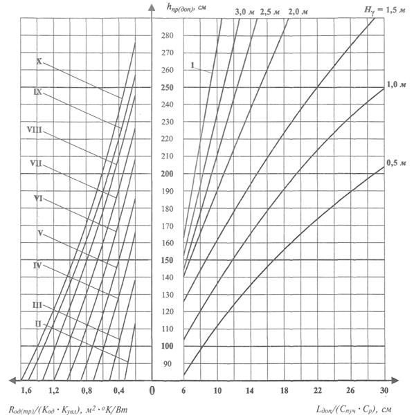 Примечания: 1. Над чертой - возвышение поверхности покрытия над уровнем грунтовых вод, верховодки или длительно (более 30 сут.) стоящих поверхностных вод; под чертой - то же, над поверхностью земли на участках с необеспеченным поверхностным стоком или над уровнем кратковременно (менее 30 сут.) стоящих поверхностных вод. 2. За расчётный уровень грунтовых вод надлежит принимать максимально возможный осенний (перед промерзанием) уровень за период между восстановлениями прочности дорожных одежд (капитальными ремонтами). В районах, где наблюдаются частые продолжительные оттепели, за расчётный следует принимать максимально возможный весенний уровень грунтовых вод за период между капитальными ремонтами. В районах с глубиной промерзания менее толщины дорожной одежды за расчётный уровень следует принимать максимально возможный уровень грунтовых вод требуемой вероятности превышения в период его сезонного максимума. Положение расчётного уровня грунтовых вод следует устанавливать по данным разовых краткосрочных замеров на период изысканий и прогнозов, составляемых институтом ВСЕГИНГЕО. При отсутствии указанных данных, а также при наличии верховодки за расчётный допускается принимать уровень, определяемый по верхней линии оглеения грунтов. 3. Возвышение поверхности покрытия дорожной одежды над уровнем подземных вод или уровнем поверхностных вод при слабо- и среднезасолённых грунтах следует увеличивать на 20 % (для суглинков и глин - 30 %), а при сильнозасолённых грунтах - на 40 - 60 %. |