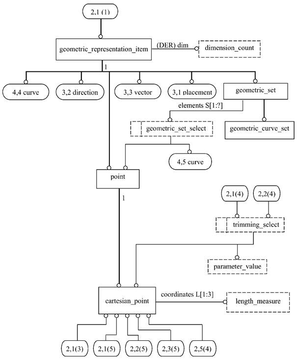 EXPRESS диаграммы, представленные на рисунках С.1 - С.5, получены из сокращенного листинга, приведенного в разделе 4, с использованием спецификаций интерфейса стандарта ИСО 10303-11. В диаграммах использована графическая нотация EXPRESS-G языка EXPRESS. Описание EXPRESS-G установлено в ИСО 10303-11, приложение D.
