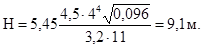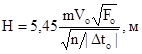 Н - геометрическая характеристика струи, м.