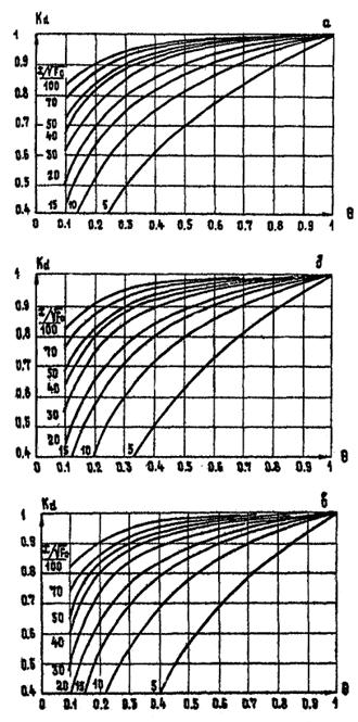2) так как FР.З. = 90 × 21 : 12 = 157,5 м2 и Fстр/FР.З. = 52 : 157,5 = 0,32, по рис. 16 определим Kс = 0,93.
