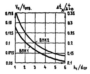 Хв - расстояние по горизонтали от ВР до высшей или низшей точки оси неизотермической компактной струи, истекающей вверх (холодной) или вниз (нагретой): принимается равной для холодной струи h2, нагретой - hВР, м.