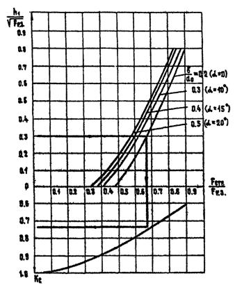 п. 7.16. Принимаем по табл. 3 m = 0,9 и n = 0,82 при a = 30°. Одновременно по рис. 14 определяем Vс = 9,1 м/с.