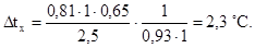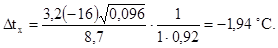 Vх - максимальная скорость движения воздуха на оси струи в месте ее пересечения с верхней границей рабочей зоны, °С.