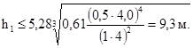 h1 - расстояние от ВР до верхней границы рабочей зоны, м.