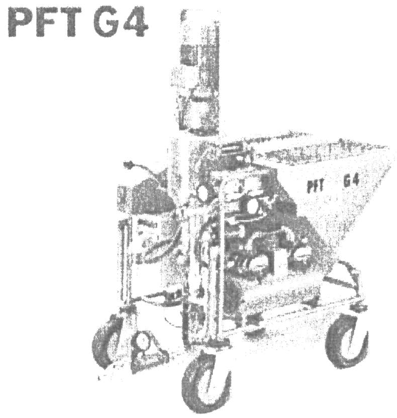 В качестве примера приведем технические данные штукатурной машины фирмы PFT. Она позволяет механизировать самые трудоемкие операции при проведении штукатурных работ - смешивание с водой и набрызг на стену. Машина смешивает и подает на расстояние до 50 м в непрерывном режиме сухие смеси, пригодные для машинной обработки с максимальной фракцией до 4 мм.