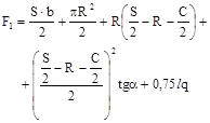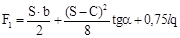 F1 = S · b +(S - С)2tgα + 0,75lq |