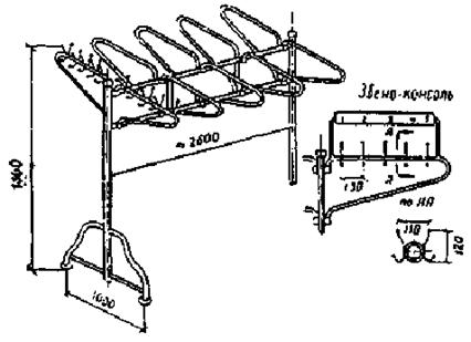 9. При открытом способе хранения достигается наиболее целесообразное использование полезной площади гардеробов, для открытого хранения одежды могут быть использованы вешалки консольного типа (см. рис. 1), которые целесообразно расстанавливать с учетом расстояний между: