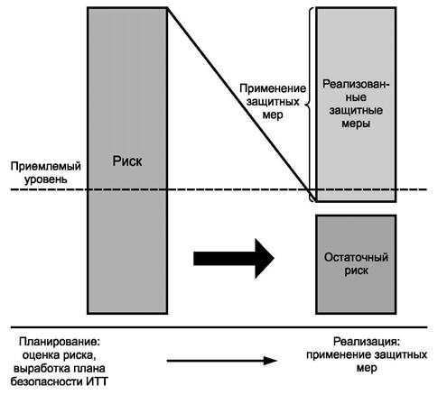 Основываясь на определении угроз и уязвимостей и их комбинации, можно оценить риск и выбрать защитные меры и, тем самым, повысить безопасность активов. Далее необходимо оценивать остаточный риск для того, чтобы определить, адекватно ли защищены активы.