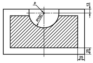 Для оценки дробления используют поверхность стекла, кроме периферийной полосы шириной 25 мм от краев образца, и сектора, имеющего радиус 100 мм от точки приложения удара (см. заштрихованную площадь на рисунке).