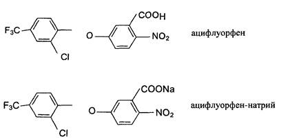 2-нитро-5-(4-трифторметил-2-хлорфенокси)бензойная кислота; 2-нитро-5-(4-трифторметил-2-хлорфенокси)бензоат натрия.