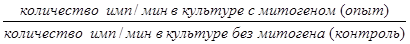 Для проведения этих экспериментов кроликов разделяют на 2 группы по 5 штук в каждой. Кроликов первой группы иммунизируют изучаемым штаммом внутрижелудочно через зонд однократно дозой 5 ´ 109 м.к. (см. прилож. 6), кролики второй группы - контрольные (интактные). Кроликам обеих групп вводят внутривенно по 1 мл 50 %-й взвеси отмытых эритроцитов барана. Иммунный ответ на гетерологичный антиген оценивают по количеству АОК (методика определения АОК см. п. 8.10) через 4 сут. после введения эритроцитов. Рассчитывают индекс поликлональной стимуляции (ИПС) по формуле: