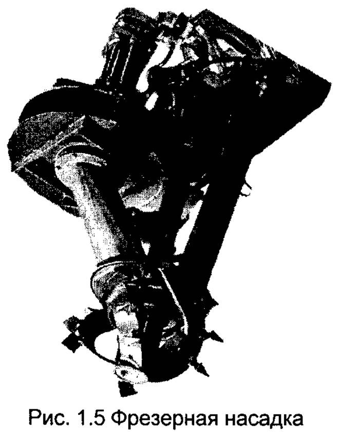 Фрезерная насадка (рис. 1.5) - снабжена фрезой диаметром 600 мм, багерным насосом и прибором для регулирования и контроля давления в отводной трубе. Предназначена для разработки песка и других абразивных грунтов с наибольшими размерами частиц 50 мм.