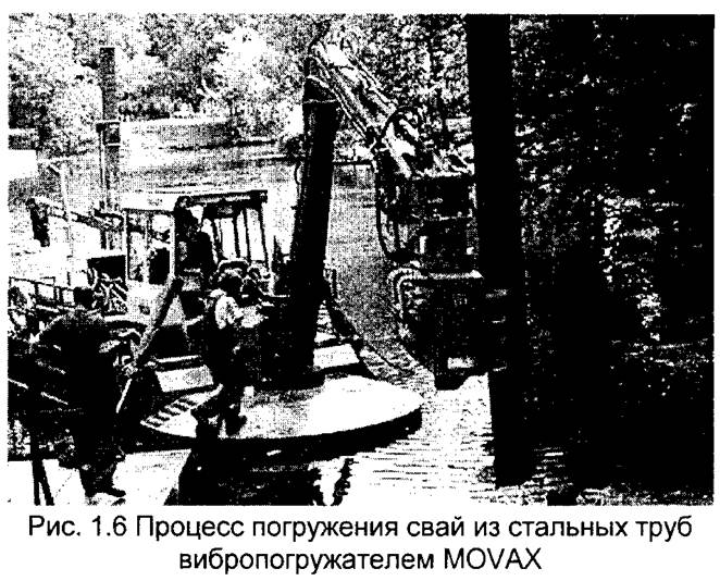 "Рис. 1.6. Процесс погружения свай из стальных труб вибропогружателем MOVAX"