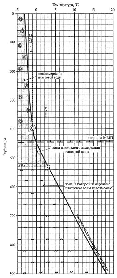 Рисунок А.1 - Уренгойское НГКМ. Зоны возможного замерзания пластовой воды (К1а-К2с) в пьезометрических и нагнетательных скважинах