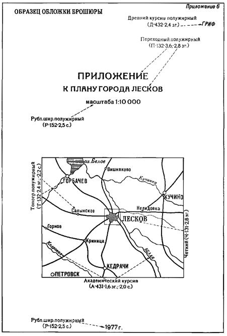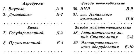 9. В целях более полного и быстрого изучения плана, а также для обеспечения точного целеуказания составляются: справка (по программе, приведенной в приложении 1), перечень названий улиц, подписанных на плане, а при издании планов в десять красок - и перечень важных объектов, выделенных на плане.