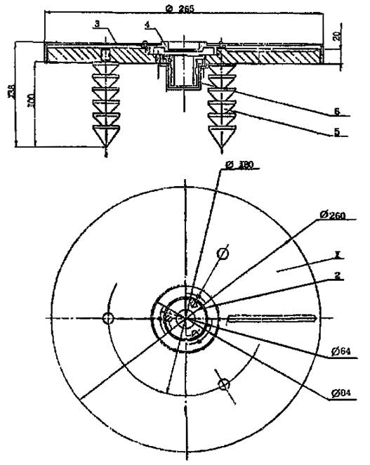 5.1 Закладная деталь - столик приспособления для принудительного центрирования геодезических приборов в рабочем положении закрепляется в верхнем торце центра пункта.