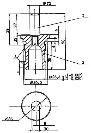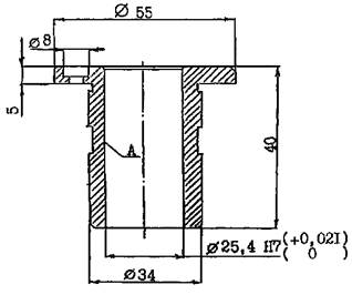 4.4 Допуск на разность диаметров рабочих поверхностей А втулки и вкладышей целика и станового винта должен быть не более 0,04 мм.