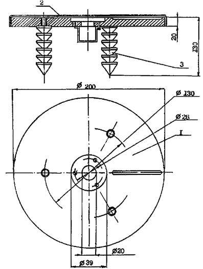 3) с диаметром столика 200 мм и центрировочным элементом в виде станового винта, соединенного со столиком с помощью резьбы (ПЦ-200/2).