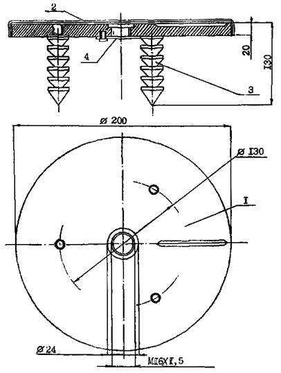 2) с диаметром столика 200 мм и центрировочным элементом в виде станового винта, соединенного со столиком с помощью фланца (ПЦ-200/1);