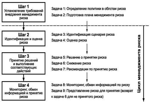 Рисунок 2 - Задачи, соответствующие шагам процесса менеджмента риска в пределах цикла менеджмента риска