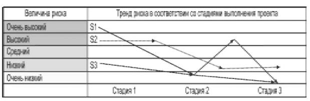 2.14 тренд риска (risk trend): Изменение риска по всему жизненному циклу проекта.