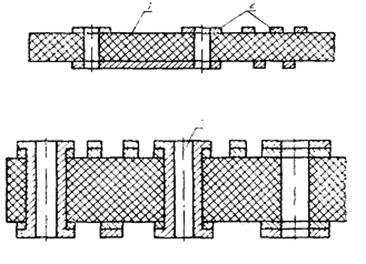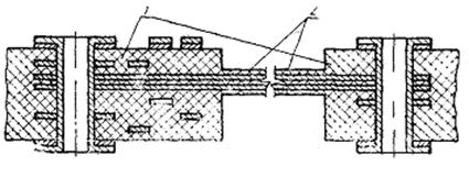 1 - материал основания (жесткая часть); 2 - материал основания (гибкая часть)