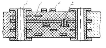 1 - материал основания; 2 - проводящий рисунок; 3 - сквозное металлизированное отверстие; 4 - переходное отверстие