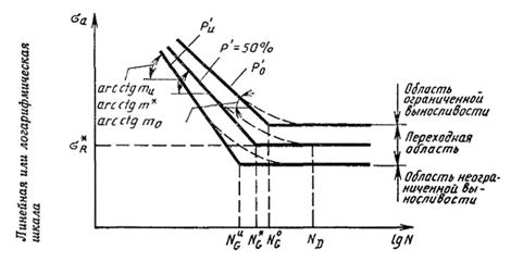 Схематическое представление кривых усталости в двойных логарифмических и полулогарифмических координатах