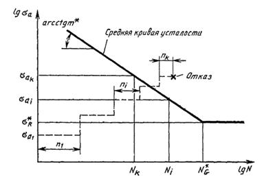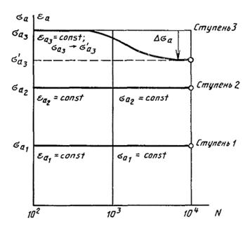 Число циклов ni, где i = 1, ..., k - 1 (k - номер ступени, на которой происходит разрушение), также принимают постоянным и вычисляют по уравнению (3)