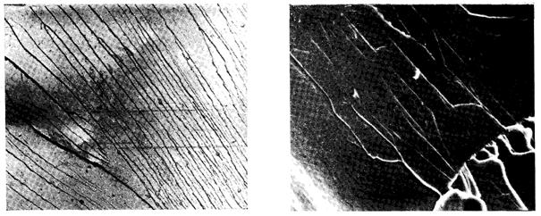 1.3.7. Усталостные бороздки (черт. 12) - элемент микрорельефа усталостного излома в виде повторяющихся удлиненных впадин и выступов, не пересекающихся между собой и ориентированных перпендикулярно локальному направлению развития трещины на данном микроучастке.