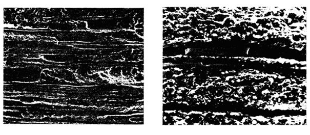 Характерны для изломов поперечных образцов из материалов, подвергнутых горячей пластической деформации.