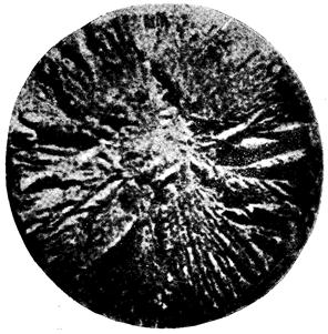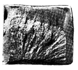 Частный случай ручьистого узора - веерообразный узор, который возникает, если ступеньки скола сходятся в одной точке в пределах фасетки.