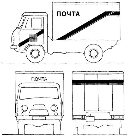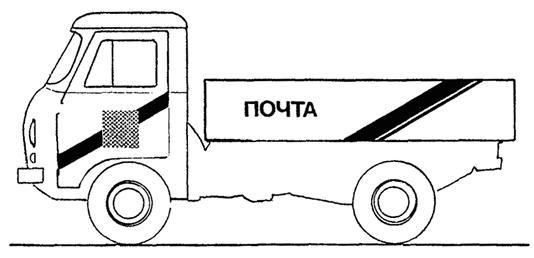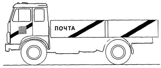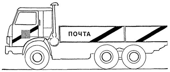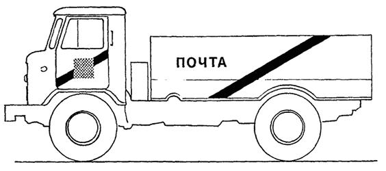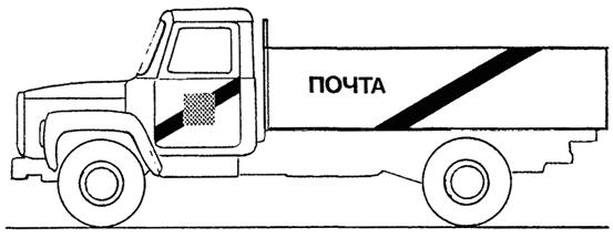 3.4 Тенты грузовых бортовых автомобилей должны быть синего цвета. На них должны наноситься контрастирующие полосы и надпись «ПОЧТА» устанавливаемых цветов.