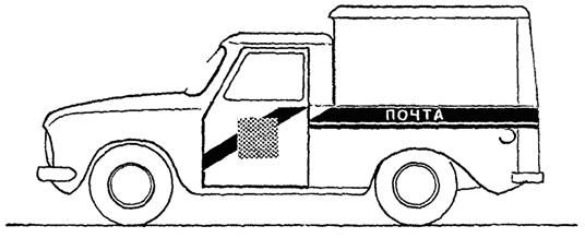 Кабины специализированных и малотоннажных автомобильных фургонов; кабины грузовых бортовых автомобилей; микроавтобусы; малотоннажные грузопассажирские автомобили, легковые автомобили; надпись «ПОЧТА» на полосах серо-белого цвета |