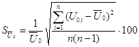 S1, S2 - оценки среднего квадратического отклонения результата измерений напряжения на образцовом полостном приемнике и поверяемом термоэлементе, вычисленные по формулам (11), (12), %;