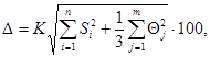 где К - коэффициент, зависящий от соотношения случайной и неисключенной систематической погрешности и принятой доверительной вероятности, определяется по ГОСТ 8.207-76; Si - оценка среднего квадратического отклонения, характеризующая i-ю случайную погрешность, %; Q - граница j-й составляющей неисключенной систематической погрешности, %;