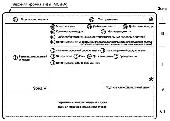 2 Для облегчения проверки виз на пунктах иммиграционного контроля компоновка визы предусматривает расположение зоны III над зоной II.